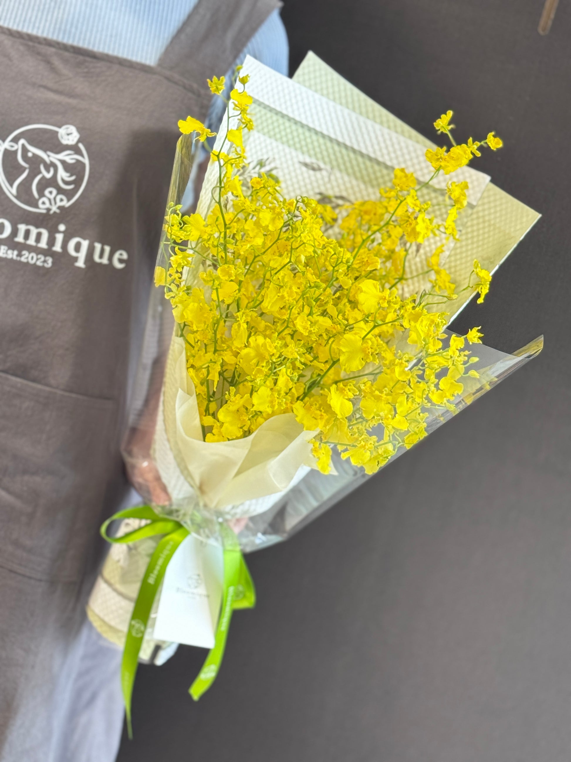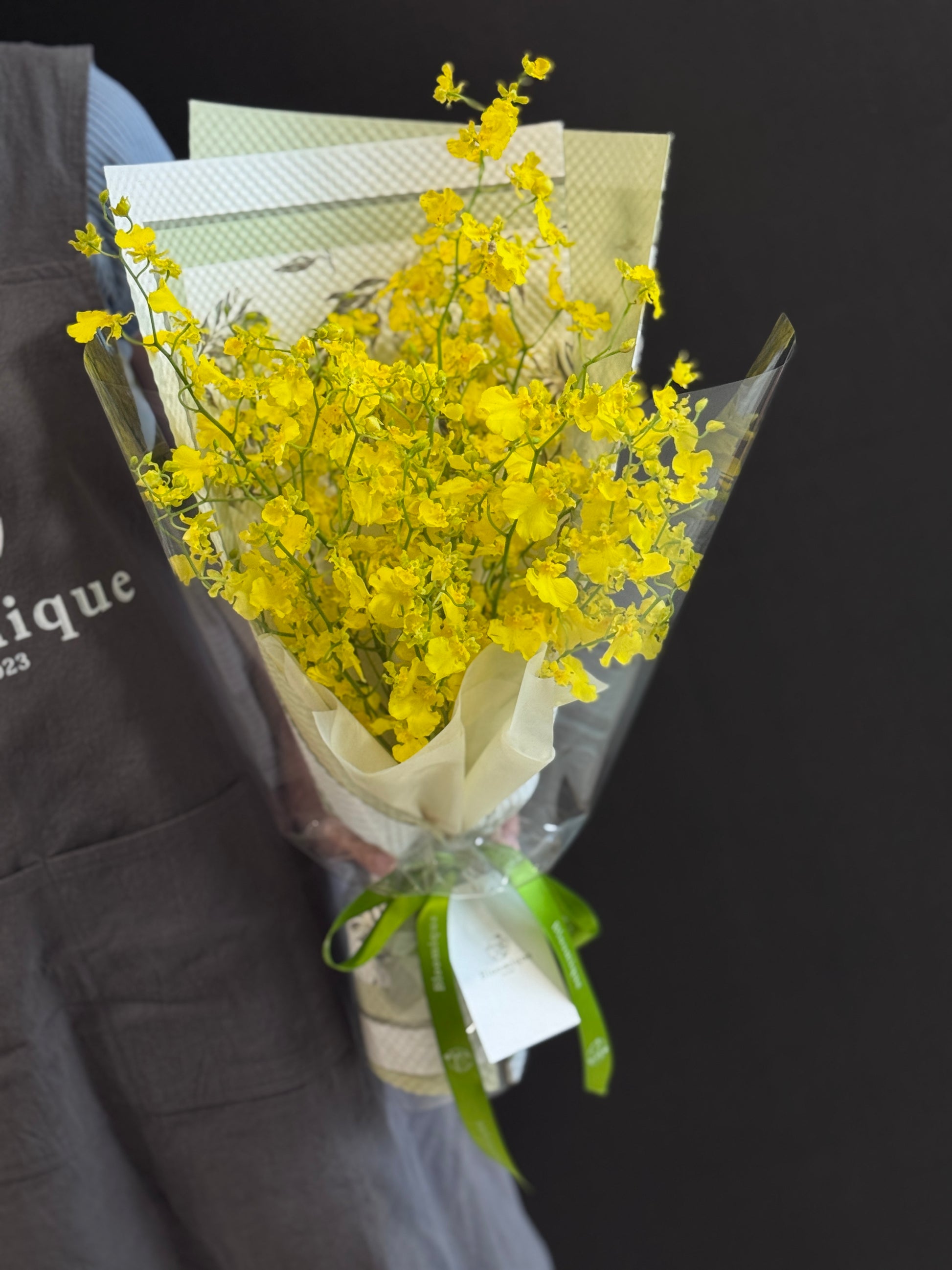 Bright, cheerful, and full of movement — this bouquet of golden dancing lady orchids is like a burst of sunshine in bloom. A joyful gift that lifts spirits and lights up any space.