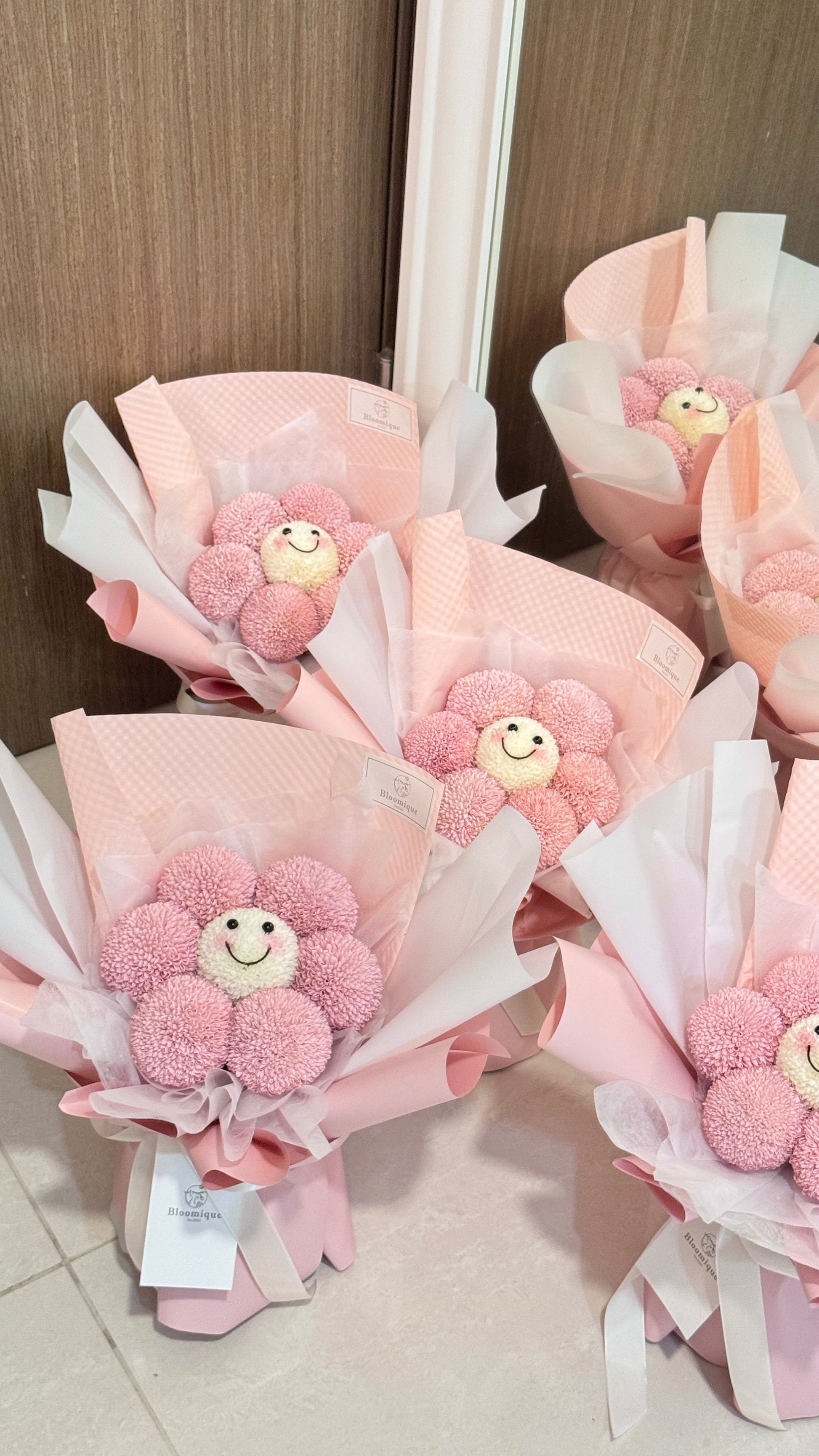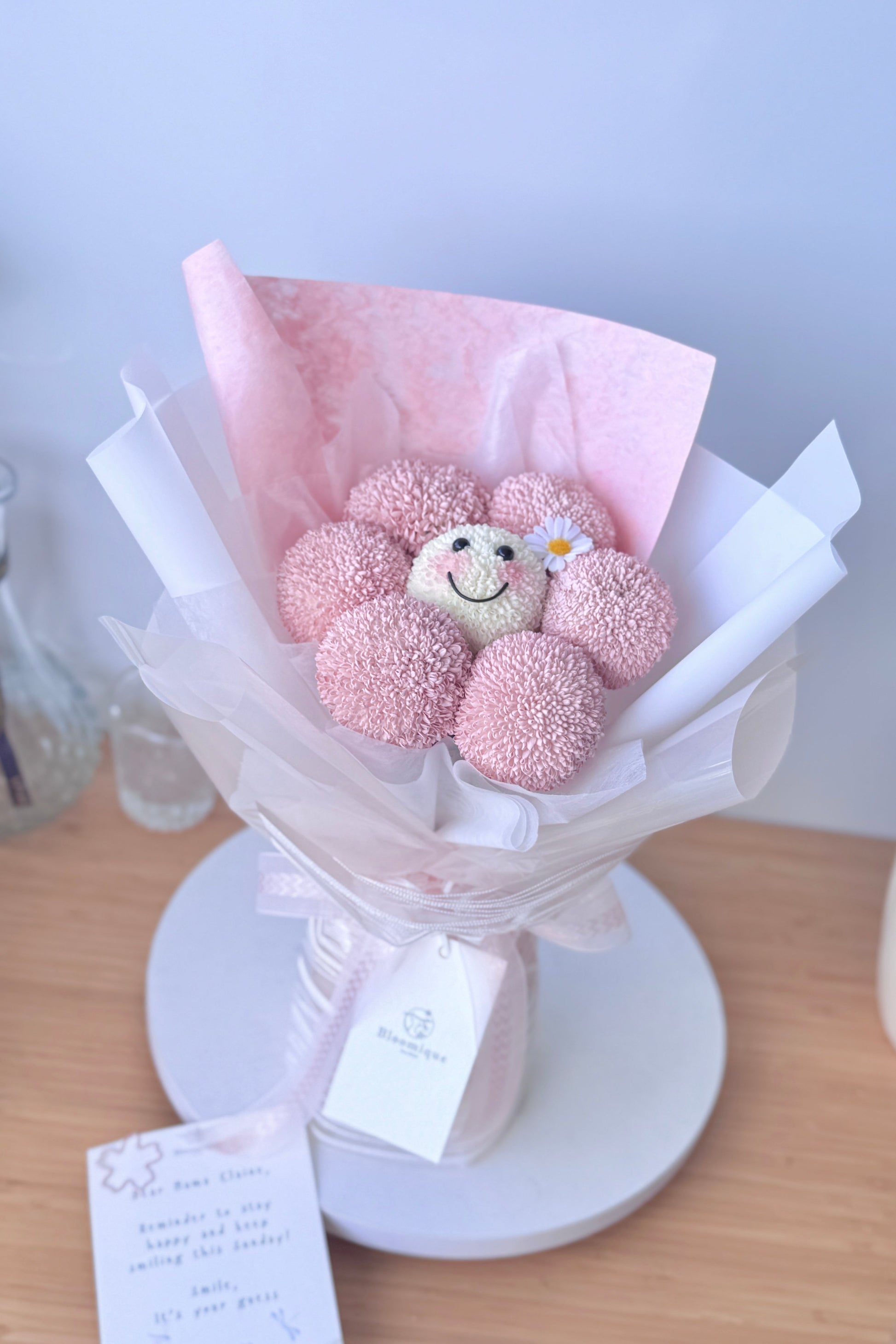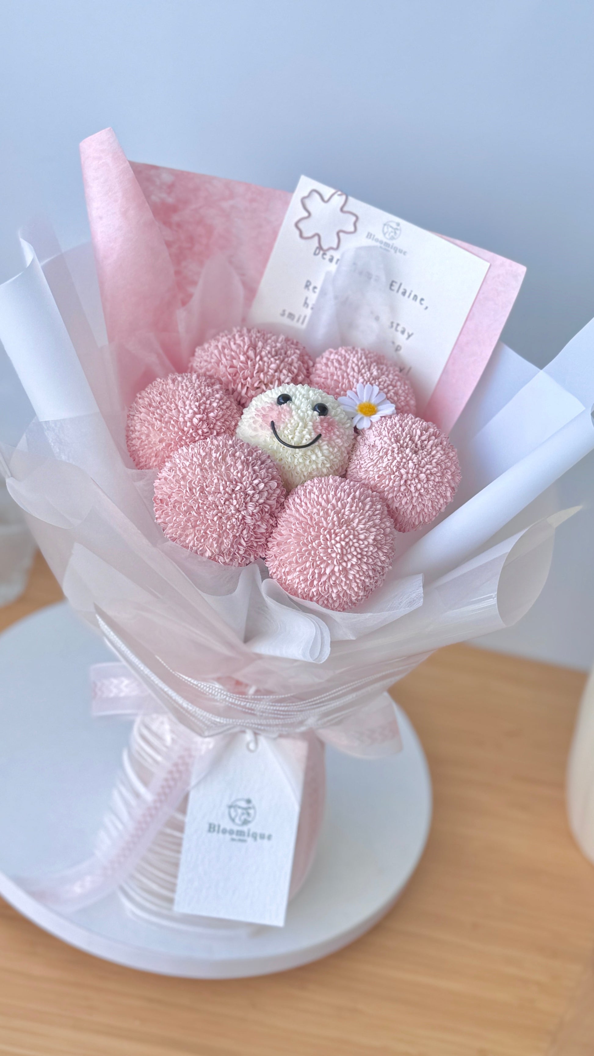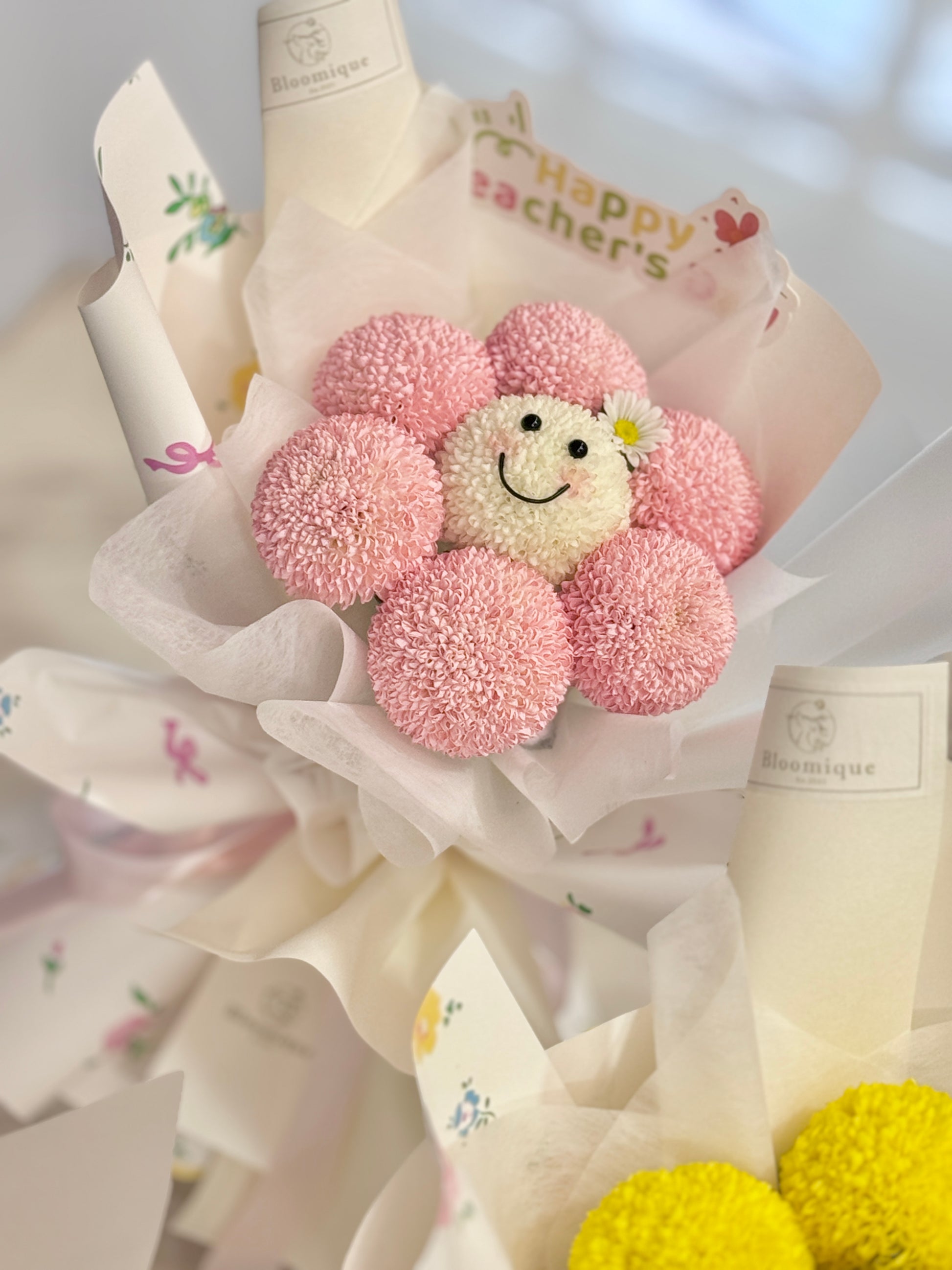 A playful bouquet of pompom chrysanthemums adorned with smiley faces, radiating pure joy and warmth. This cheerful arrangement symbolizes happiness, positivity, and the simple pleasure of making someone smile. Perfect for brightening up anyone’s day or sending a dose of sunshine to a loved one.